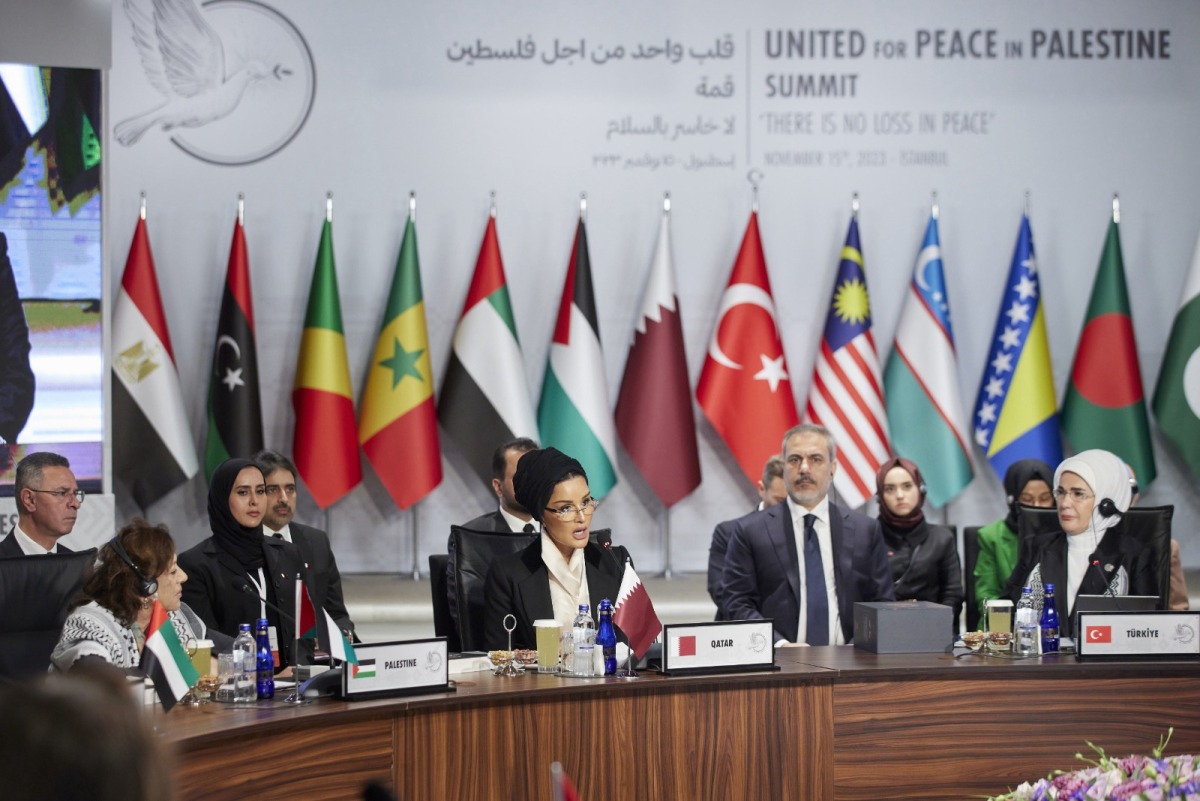 Istanbul: Chairperson of Education Above All (EAA) Foundation and SDG Advocate HH Sheikha Moza bint Nasser participated today in a high-level summit entitled "United for Peace in Palestine."