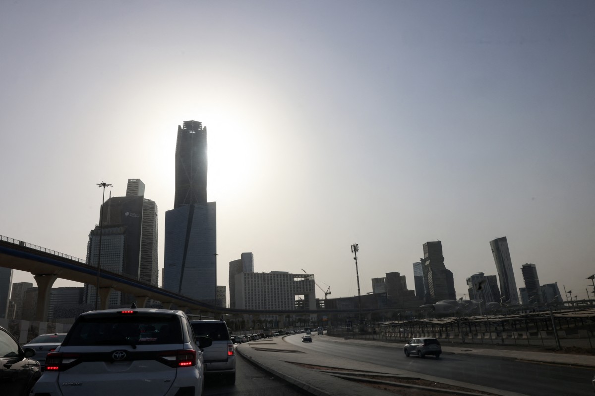 Commuters drive along a road in the King Abdullah Financial District (KAFD) in Riyadh on August 14, 2025, during the soaring summer heat. (Photo by Fayez Nureldine / AFP)
