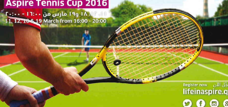 The Aspire Tennis Cup 2016 is a community tennis tournament that will take place in March 2016 at the Aspire Zone tennis courts by the Ladies’ Club.