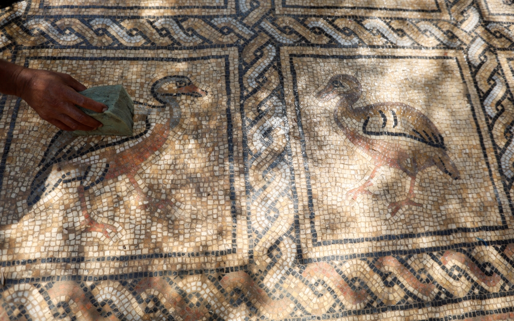 GAZA: An ornate Byzantine floor mosaic showing a variety of colourful birds and other animals has been discovered by chance in Gaza after a Palestinian farmer tried to plant new trees on his land.