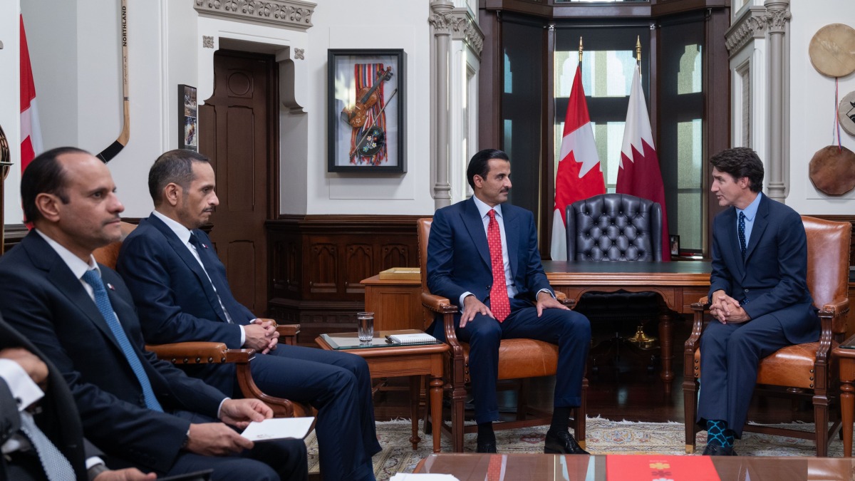 Ottawa: The Amir HH Sheikh Tamim bin Hamad Al Thani met today with Prime Minister of friendly Canada HE Justin Trudeau, at the House of Commons headquarters in the capital, Ottawa.
