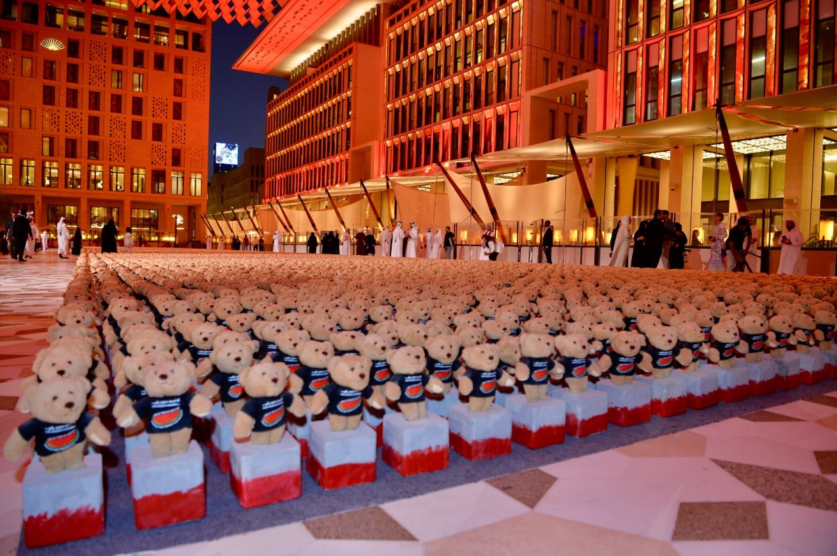 The charity art installation in the heart of Doha showcases 15,000 teddy bears in solidarity with the kids in Gaza. Each teddy bear represents one of the Palestinian children who have faced difficult circumstances during their early life due to the war. The artist, Bachir Mohammad, was inspired in December 2023 by a child in Gaza who had lost her family and was holding a teddy bear.