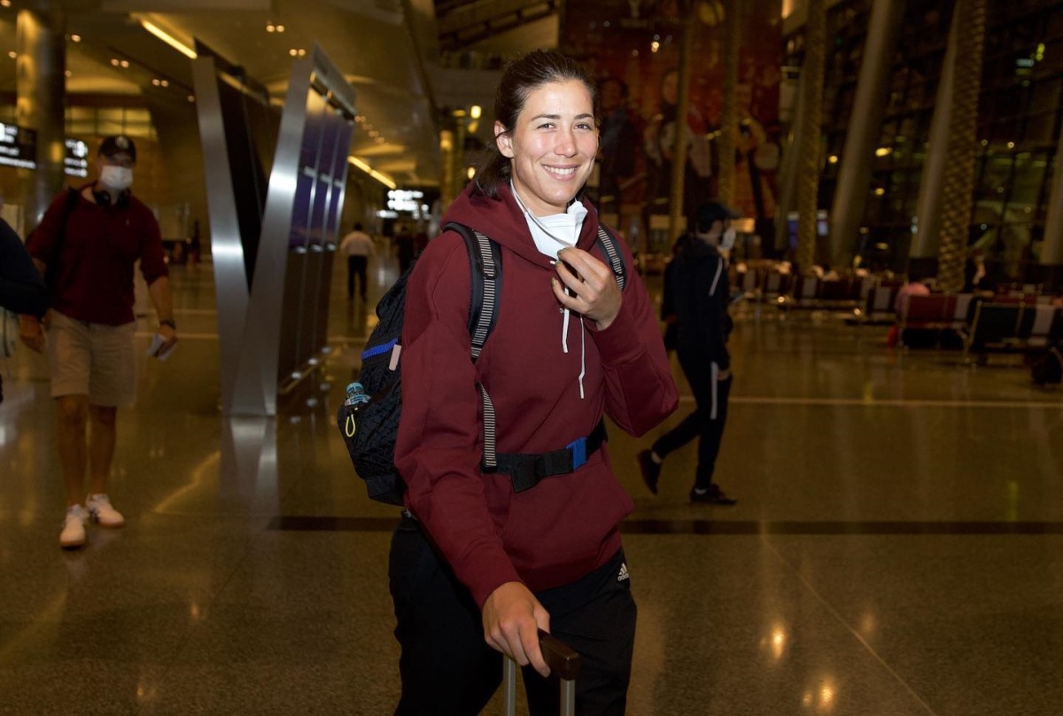 Belarusian Aryna Sabalenka arrives at the Hamad International Airport