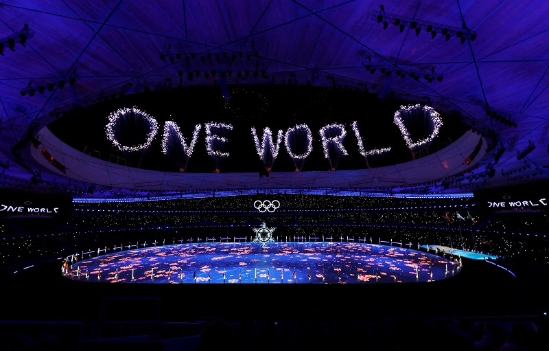 Celebrated film director Zhang Yimou orchestrated another visually dazzling spectacle for Sunday’s event in Beijing National Stadium, also known as the Bird’s Nest, returning with volunteers and special effects seen in an opening ceremony that drew criticism from the U.S. for its political overtones.
