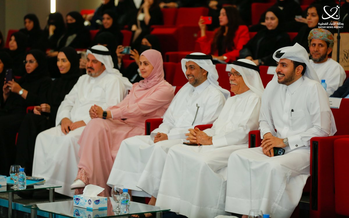 The ceremony was attended by Dr. Hassan Al Derham, QU President, Sheikha Dr. Hessa bint Hamad Al-Thani, Dean of the College of Education, a number of university officials and university affiliates, including professors and students, in addition to a number of departments and high school students.