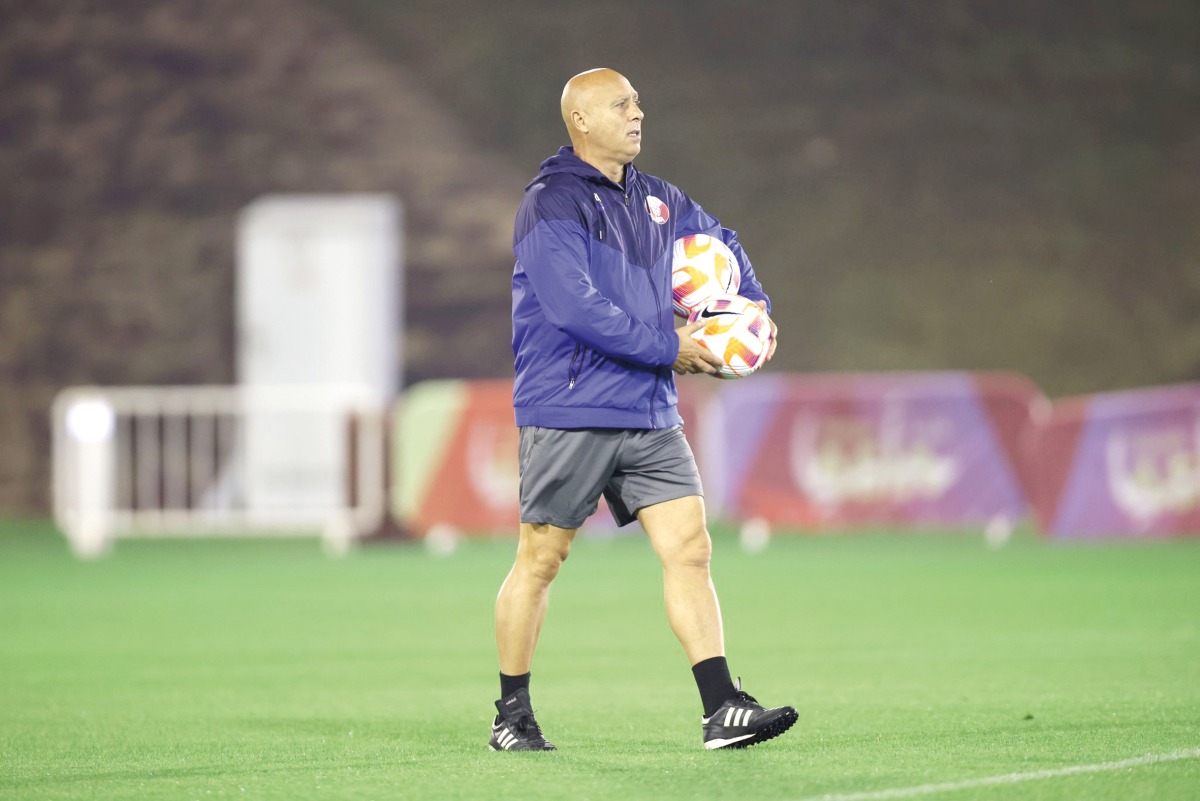 Qatar coach Marquez Lopez during the training session, yesterday.