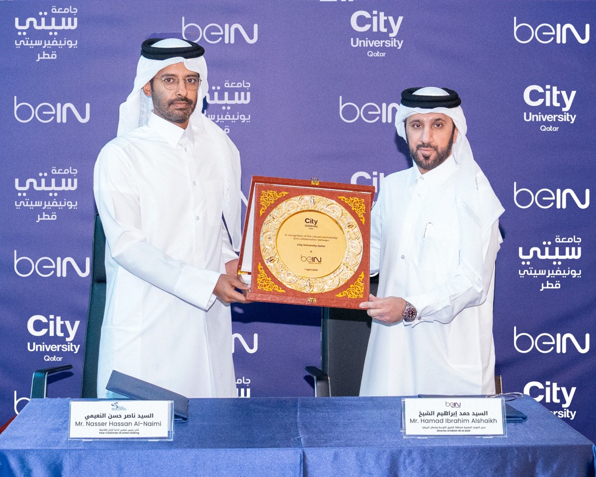 City University Qatar and beIN MEDIA GROUP, ‘beIN’ have formed a strategic partnership to advance talent development, strengthen academic-industry collaboration, and drive innovation across the region. The agreement was signed at City University Qatar’s Lusail campus by Mr. Hamad Ibrahim Al-Naimi Al-Shaikh, beIN’s Director of MENA HR, and Mr. Nasser Hassan Al-Naimi, Vice-Chairman at Artan Holding, in the presence of senior representatives from both organisations.