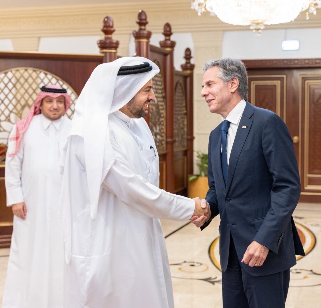 Doha: Minister of State at the Ministry of Foreign Affairs HE Dr. Mohammed bin Abdulaziz bin Saleh Al Khulaifi met Tuesday in Doha with Secretary of State of the United States of America HE Antony Blinken.