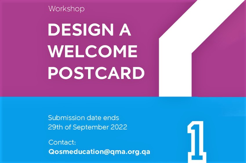 The Learning and Outreach Section at 3-2-1 Qatar Olympic and Sports Museum is encouraging you to design a welcome postcard and submit it to the QOSM reception on September 27, 2022 and no later than September 29, 2022. Contact: [email protected] or call: 4452 5200 for further inquiries.