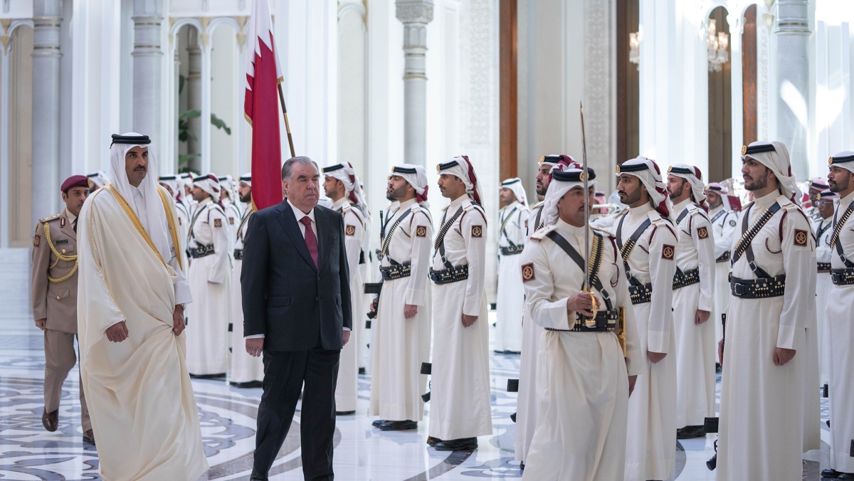 Doha, Qatar: The Amir HH Sheikh Tamim bin Hamad Al-Thani held a session of official talks at Lusail Palace on Monday with President of the friendly Republic of Tajikistan HE Emomali Rahmon.