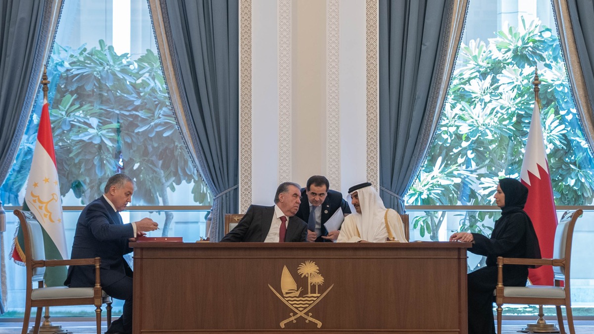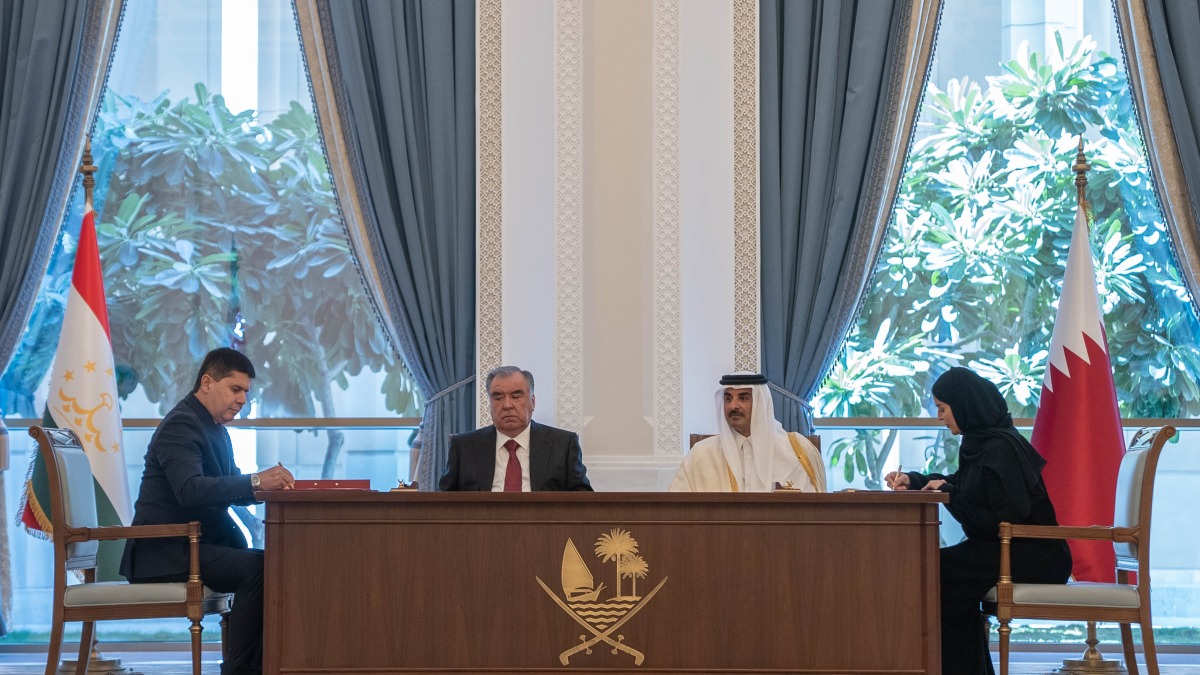 Doha, Qatar: The Amir HH Sheikh Tamim bin Hamad Al Thani and President of the Republic of Tajikistan HE Emomali Rahmon, today witnessed the signing of an agreement and several memorandums of understanding (MoUs) between the governments of the two countries at the Lusail Palace.