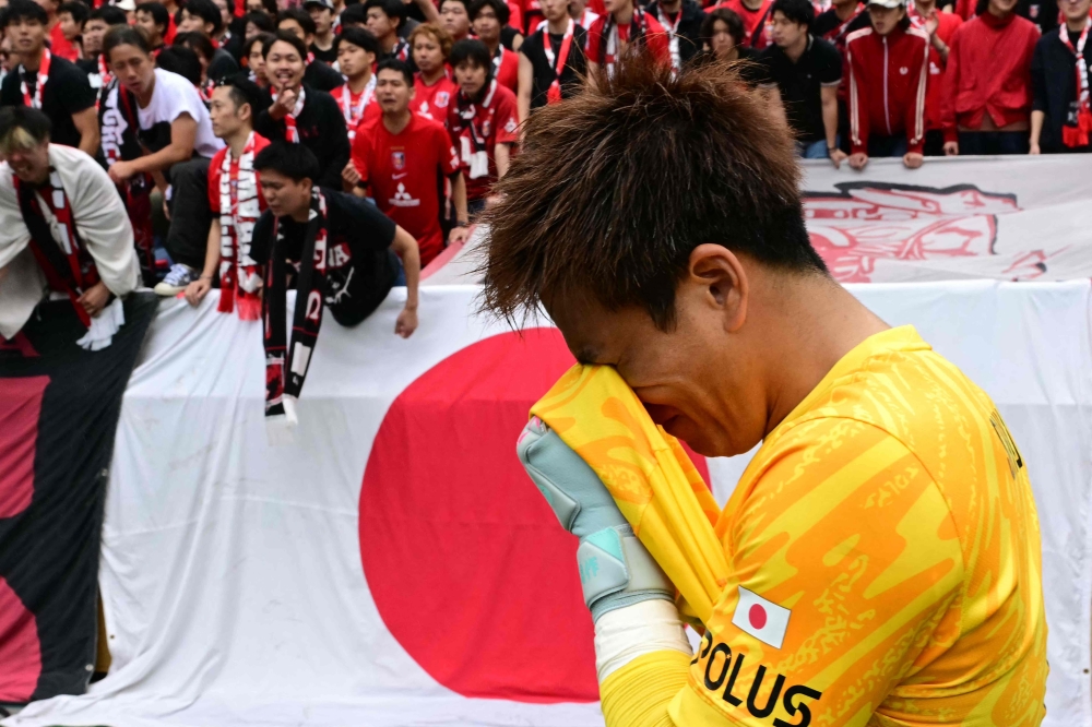 Urawa Red Diamonds' Japanese goalkeeper #01 Shusaku Nishikawa reacts at the end of the FIFA Club World Cup 2025 Group E football. (Photo by Pablo Porciuncula / AFP)