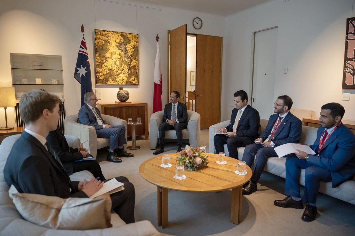 Canberra: Prime Minister and Minister of Foreign Affairs HE Sheikh Mohammed bin Abdulrahman bin Jassim Al Thani met in Canberra on Thursday with Prime Minister of Australia HE Anthony Albanese.