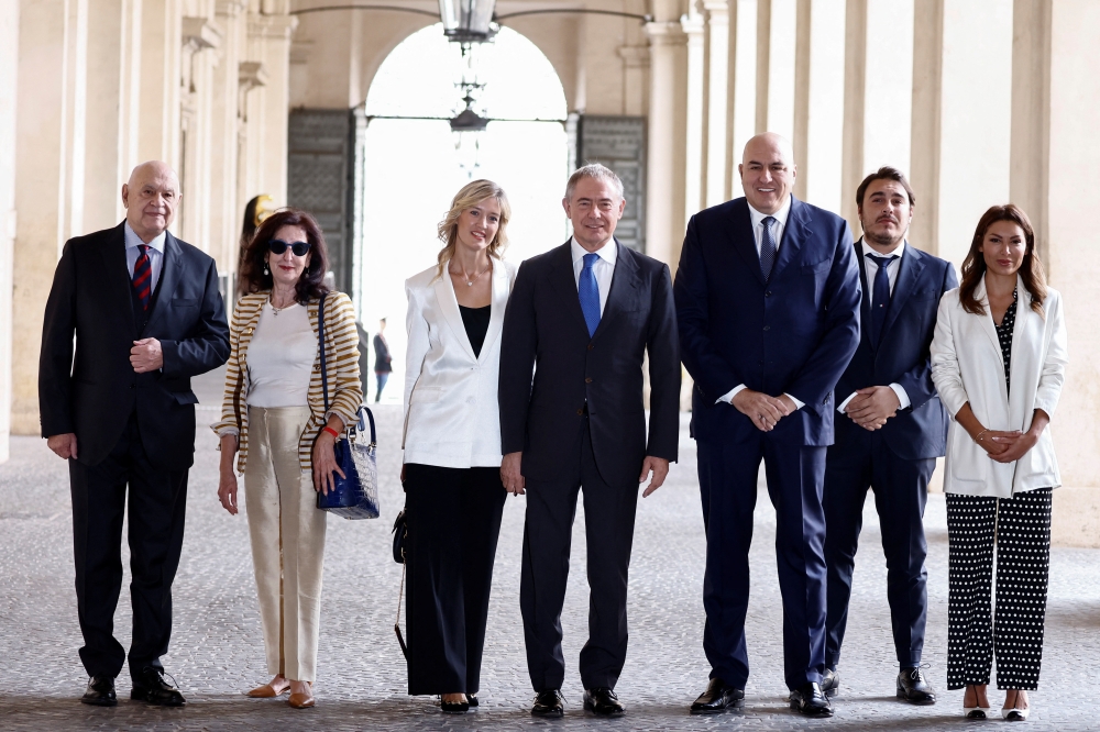 Italy's newly appointed Justice Minister Carlo Nordio, Industry Minister Adolfo Urso and Defence Minister Guido Crosetto appear for the swearing-in ceremony at the Quirinale Presidential Palace, in Rome, Italy October 22, 2022. Reuters/Yara Nardi