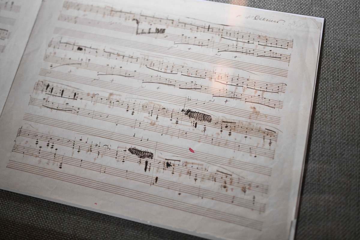 This photograph taken on January 23, 2025 shows a manuscript of the first and unpublished version of the Ballade in F minor, Op. 52 written by Polish composer Frederic Chopin, during its presentation at the Fryderyk Chopin Museum in Warsaw, Poland. (Photo by Sergei GAPON / AFP)