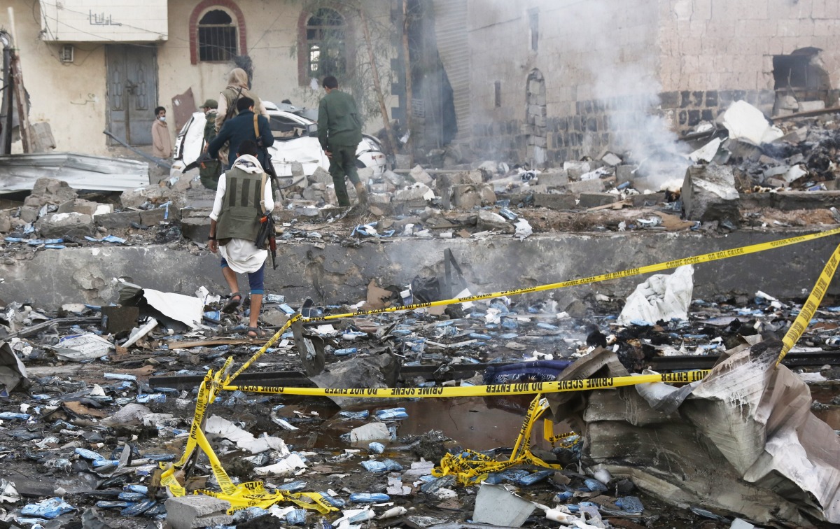 People inspect the site after U.S. airstrikes in Sanaa, Yemen, on March 20, 2025. (Photo by Mohammed Mohammed/Xinhua)