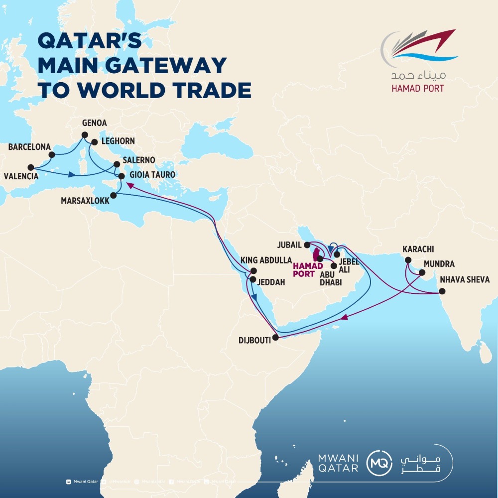 Doha, Qatar: Qatar Ports Management Company (Mwani Qatar), in association with Mediterranean Shipping Company (MSC), has announced the inauguration of the new weekly shipping line connecting Hamad Port directly to ports on the Indian subcontinent, the Red Sea, and the Western Mediterranean region.