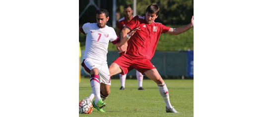 Qatar U-23 players in action against a Swiss side in a friendly on sidelines of their training camp in Zurich yesterday. The squad under coach Felix Sanchez is in the final stages of their training tour of Europe. The team is preparing for the U-23 West Asian Championship, which will also serve as the qualifiers for next year’s Olympics.