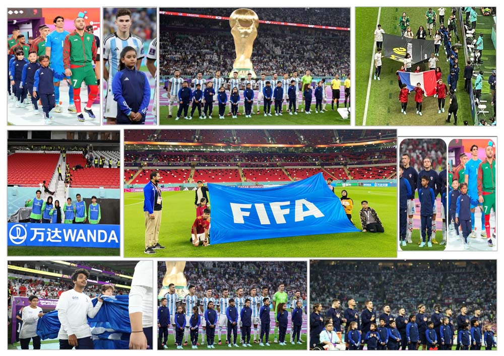 Afafh Nasif escorted the player of Morocco for the match against Croatia in the decider for the third place. Amaana Sajid escorted the player of Argentina and Muhammed Ismayil escorted a player from Croatia for the semi-final match between Argentina and Croatia.