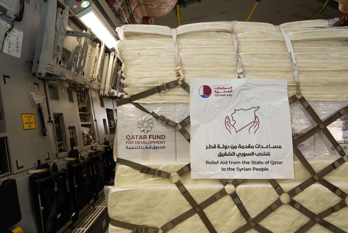Beirut: A Qatari Amiri Air Force aircraft arrived today, December 23, at Rafic Hariri International Airport in Beirut, carrying humanitarian aid, including food and shelter supplies, provided by the Qatar Fund for Development (QFFD), as part of the air bridge operated by the State of Qatar to provide relief to the brethren in the Syrian Arab Republic and contribute to addressing their humanitarian conditions.