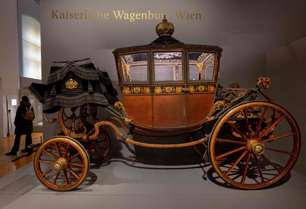 A carriage of Empress Elisabeth of Austria (known as Sisi) , originally the Milan coronation carriage of Napoleon 1, is seen on display. (Photo by Joe Klamar / AFP)