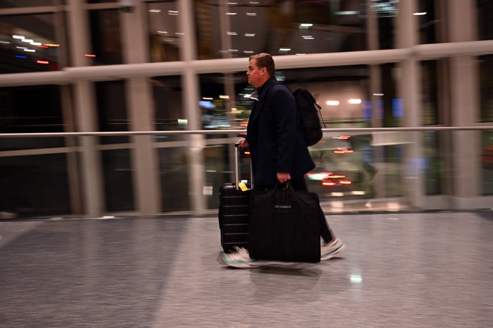 A passenger walks through the check-in area of Ronald Reagan National Airport in Washington, DC, on January 24, 2026. (Photo by Alex Wroblewski / AFP)