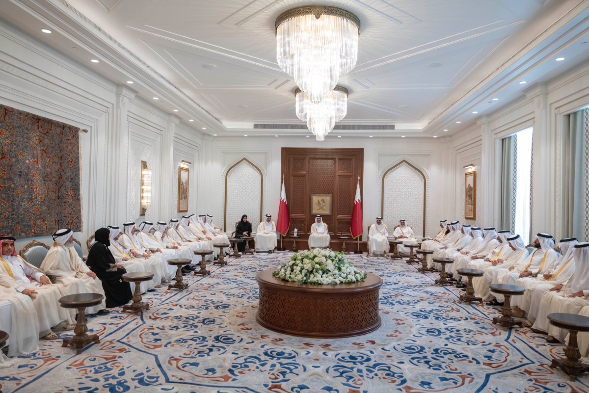 The Amir HH Sheikh Tamim bin Hamad Al Thani met with H E Hassan bin Abdullah Al-Ghanim, Speaker of the Shura Council and their Excellencies members, on the occasion of the opening of the second ordinary session of the first legislative term, corresponding to the fifty-first annual session of the Council, at the Council headquarters in morning today.