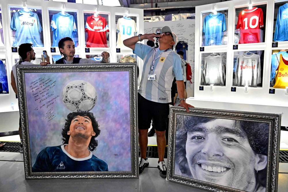"I hope (the painting) reaches the national team and motivates them for Saturday," 52-year-old Segatori said. The gold framed painting shows Maradona as a regular fan supporting the team. "We all want him to be there cheering."