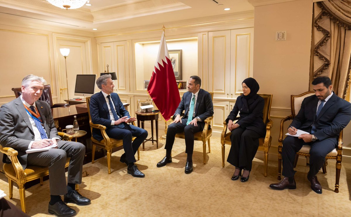 New York: Prime Minister and Minister of Foreign Affairs HE Sheikh Mohammed bin Abdulrahman bin Jassim Al Thani met today with the Prime Minister of the Kingdom of the Netherlands Dick Schoof, on the sidelines of the 79th session of the United Nations General Assembly in New York.