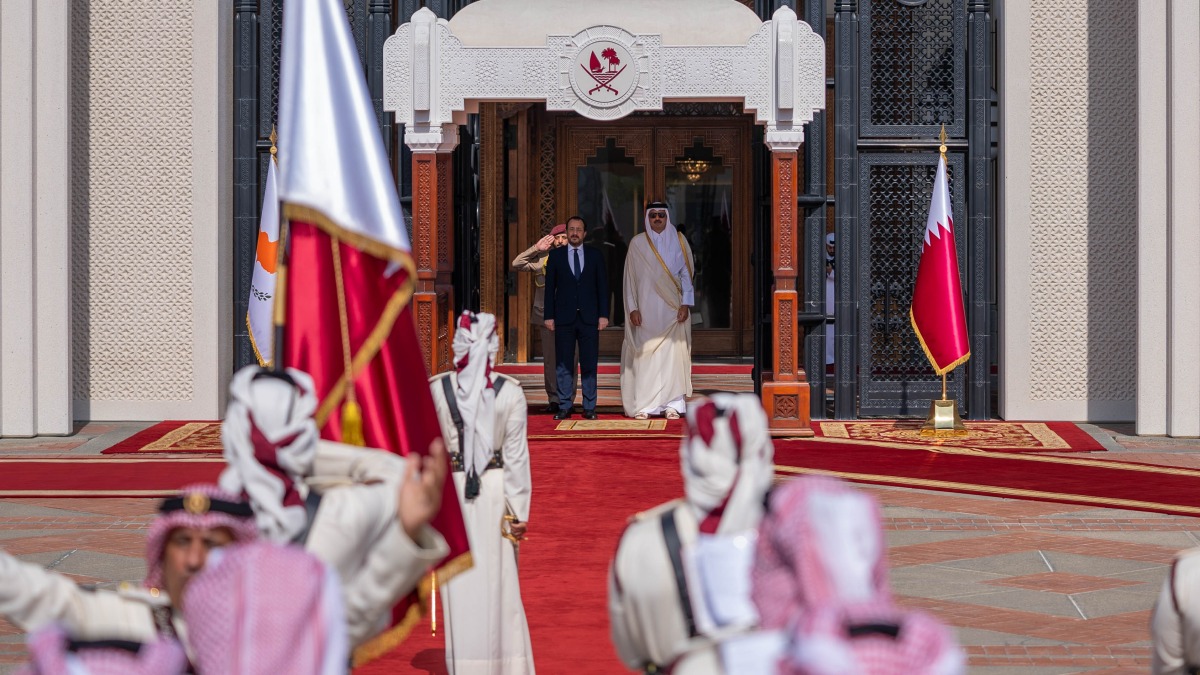 An official reception ceremony was accorded to HE the President of the Republic of Cyprus upon his arrival at the Amiri Diwan.