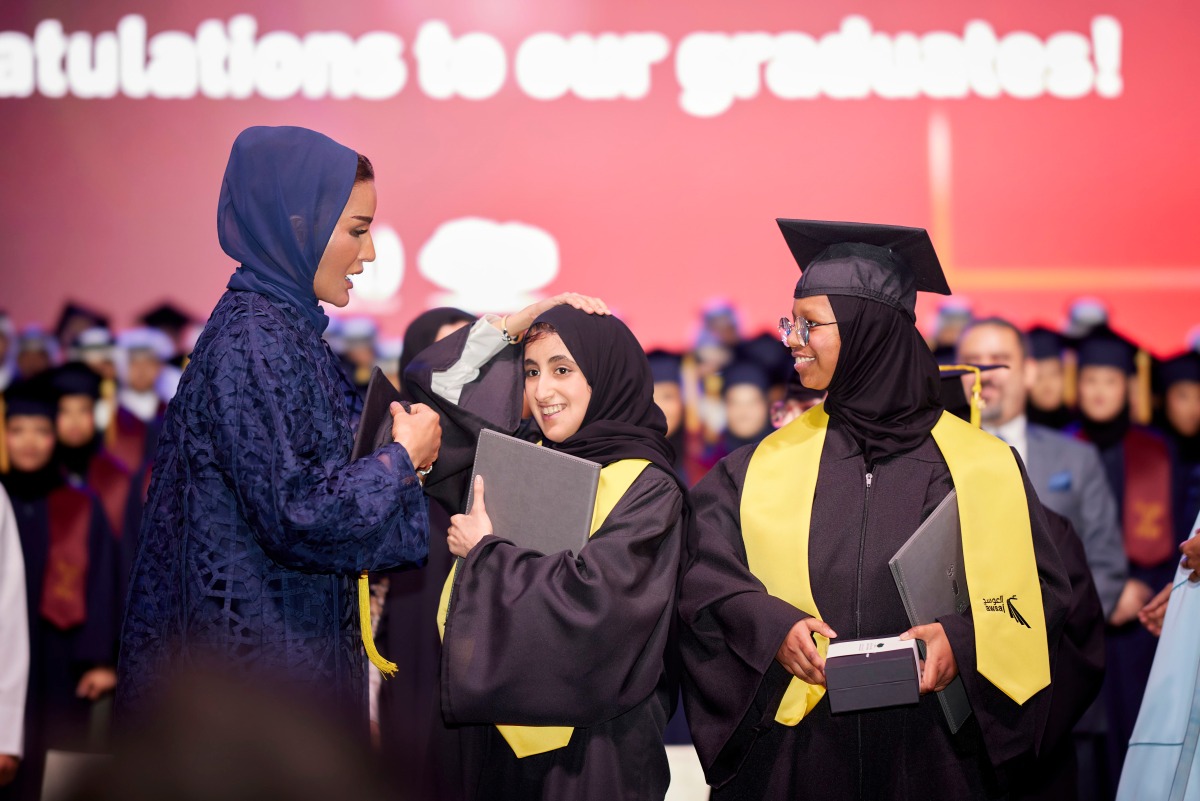 Her Excellency Sheikha Hind bint Hamad Al Thani, Vice Chairperson of Qatar Foundation, was also in attendance at the ceremony at Qatar National Convention Centre, together with ministers, diplomats, teachers, faculty members, and the families of graduating students.