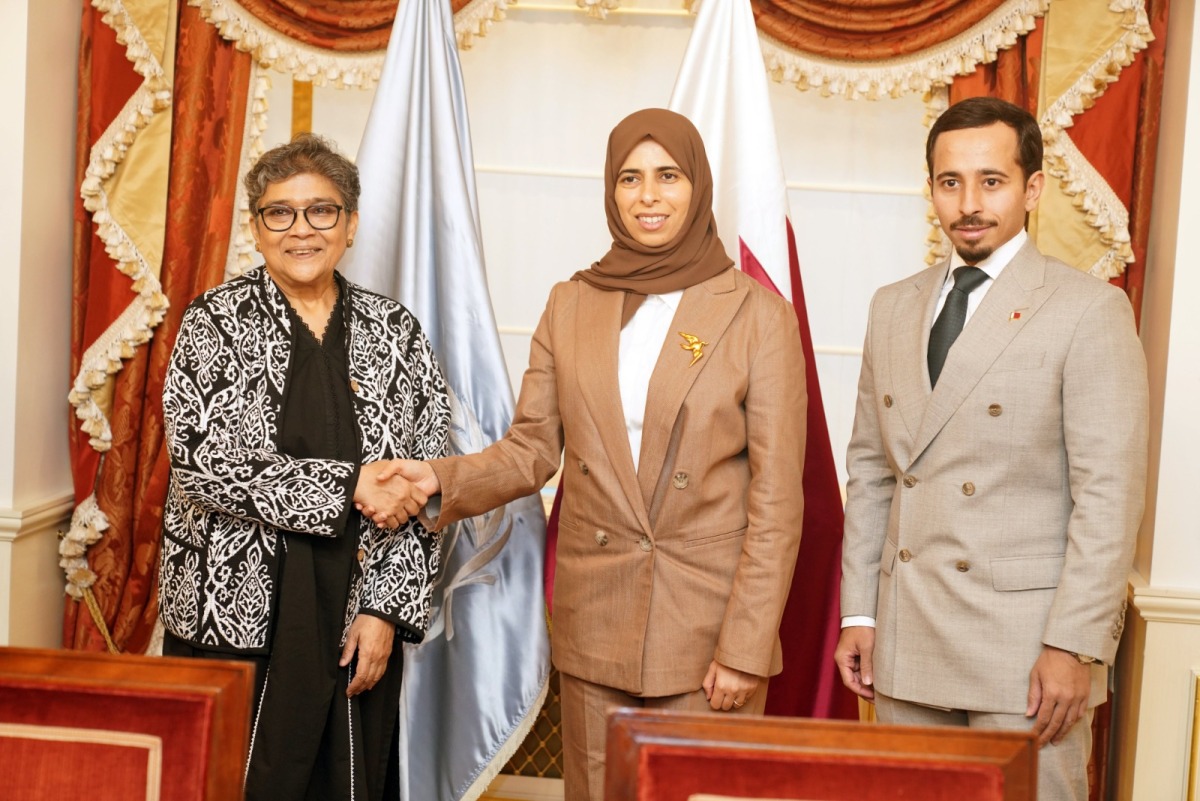 New York: Minister of State for International Cooperation HE Lolwah bint Rashid Al Khater met with Under-Secretary-General of the United Nations and High Representative for the Least Developed Countries, Landlocked Developing Countries and Small Island Developing States HE Rabab Fatima, on the sidelines of the 79th session of the United Nations General Assembly in New York.