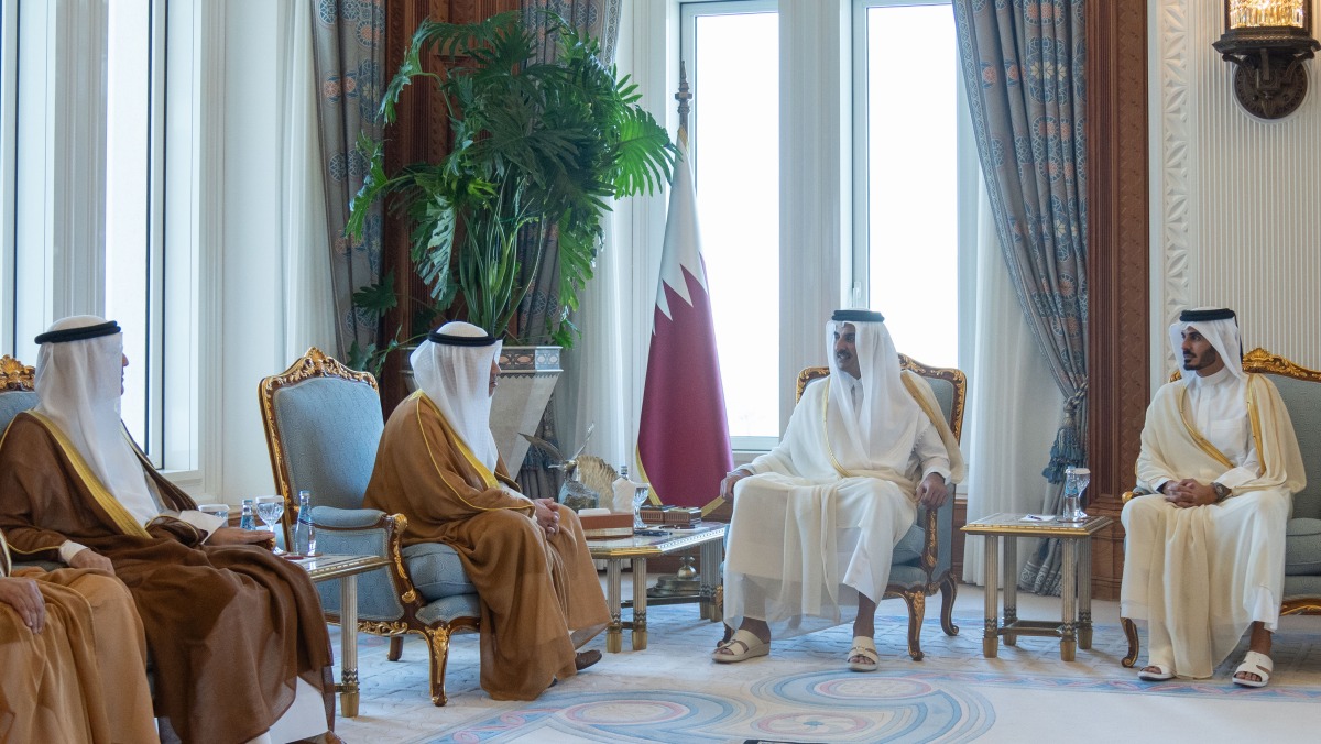Doha, Qatar: The Amir HH Sheikh Tamim bin Hamad Al Thani received in his office at the Amiri Diwan this morning HE Sheikh Fahad Yousef Saud Al-Sabah, First Deputy Prime Minister, Minister of Defense and Minister of Interior of Kuwait, and the accompanying delegation, on the occasion of his visit to the country to participate in the opening of the 15th edition of Milipol Qatar 2024 exhibition and conference.