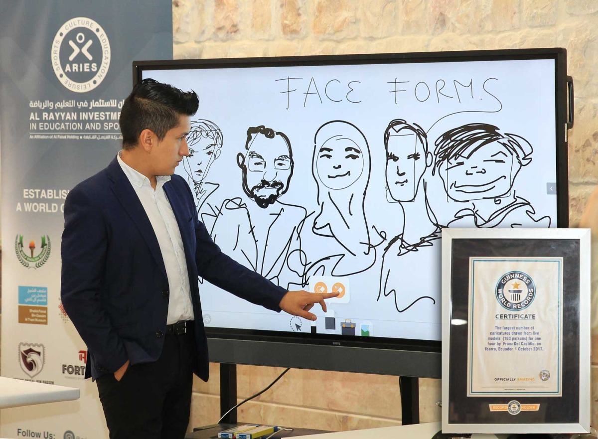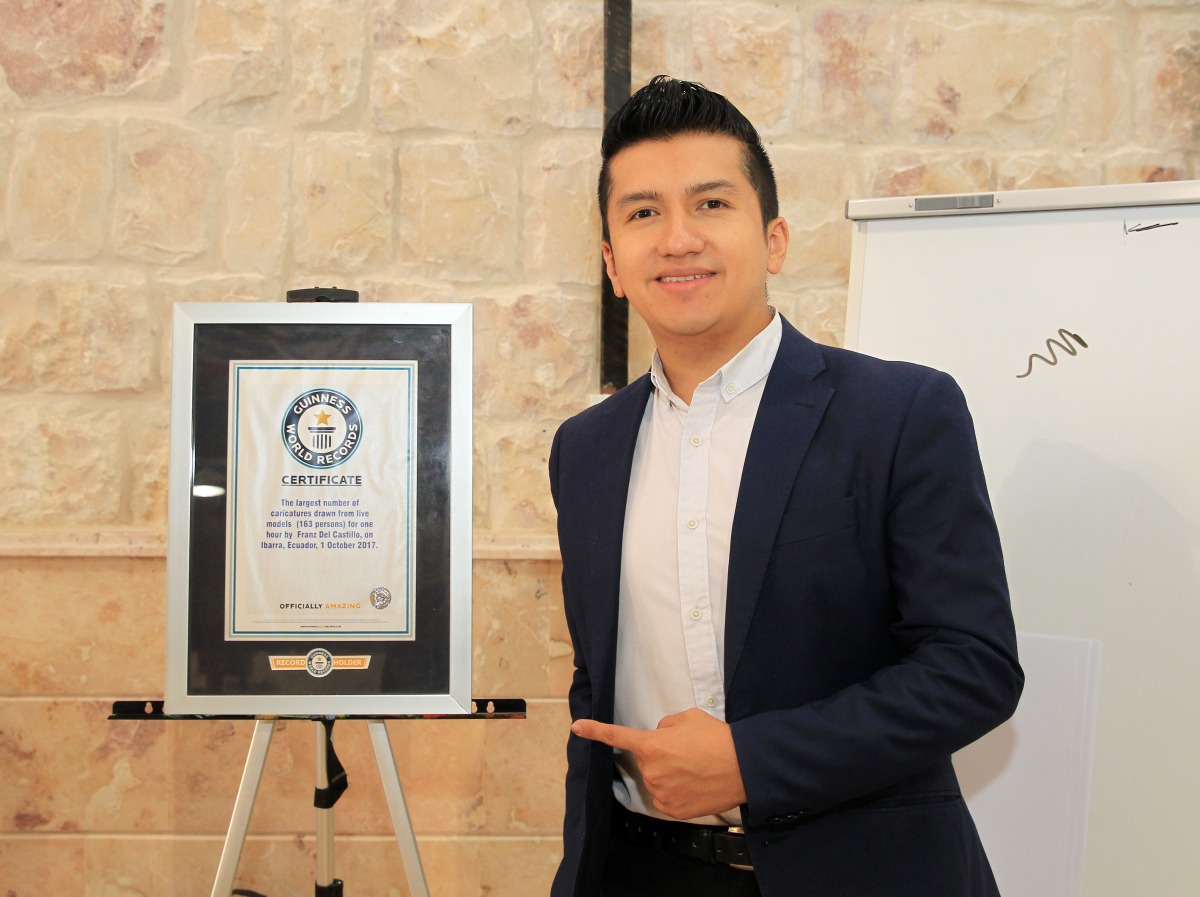 Franz Del Castillo holds a world record for creating the largest number of caricatures drawn from live models (163 persons) for one hour in Ibarra, Ecuador, on October 1, 2017. And so far, he has created caricatures of around 200 celebrities, including Pope Francis when he visited Ecuador in 2015, Paul McCartney during his concert in Ecuador in 2014, Luis Fonsi, and the Backstreet Boys among others.