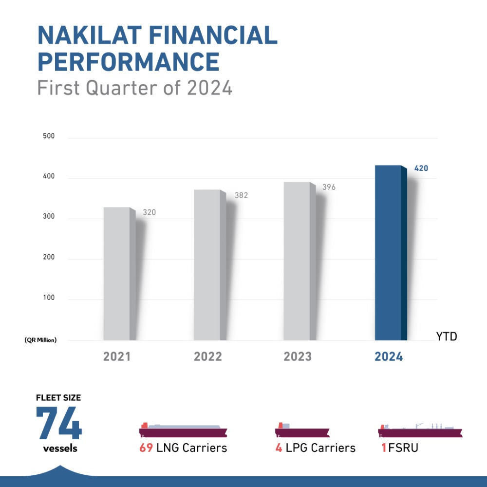 Doha, Qatar: Nakilat, Qatar’s premier LNG shipping company, announced its financial results for the first quarter ended March 31, 2024.