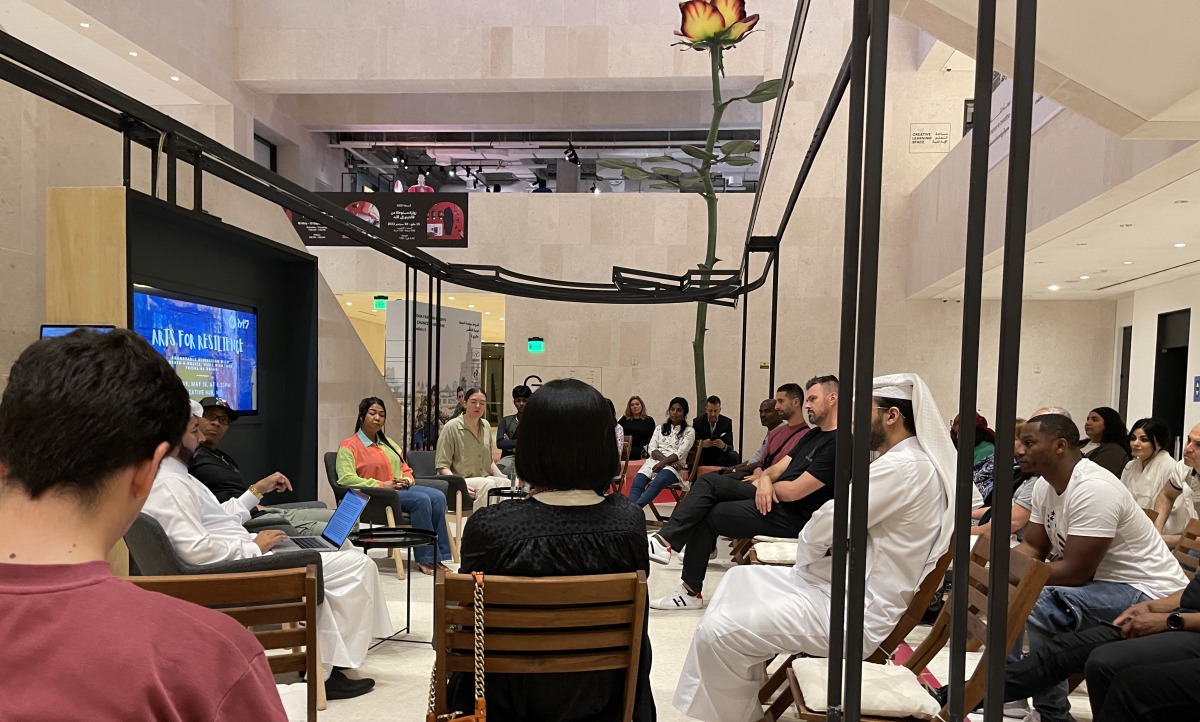 Meanwhile, Brass-A-Holics brought the vibrant sounds of New Orleans brass and Washington, D.C.’s go-go funk – both genres created by Black Americans – to Qatar’s stages. Playing alongside students at the Qatar Music Academy, Brass-A-Holics delivered an intimate and collaborative concert, with infectious energy and a distinctive sound. The band also joined a stimulating roundtable discussion at M7 with Qatari break-dancer and Flamenco guitarist Faisal al-Dosari and Sudanese muralist Assil Diab. They talked about how their artistic passions connect them to their communities, and help them be resilient through emotional challenges – for example, when Brass-a-Holics performs in New Orleans’ traditional outdoor, musical funeral processions.