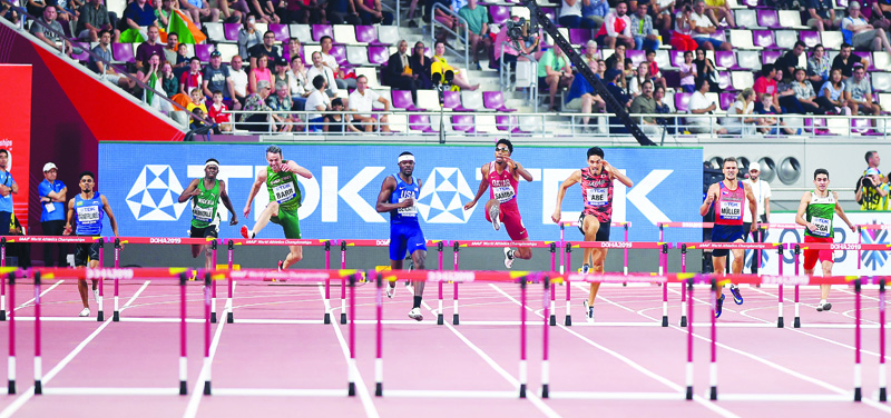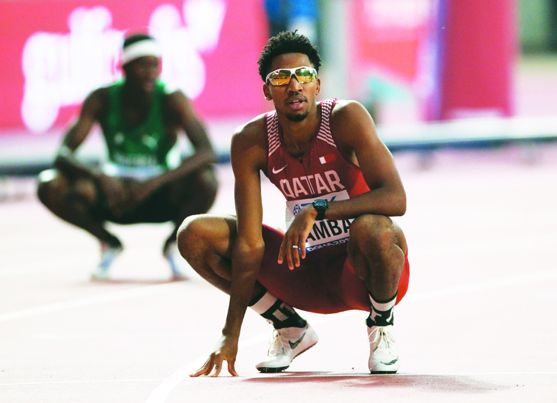 Qatar’s Abderrahman Samba reacts after finishing second in the Men’s 400m Hurdles semi-finals.