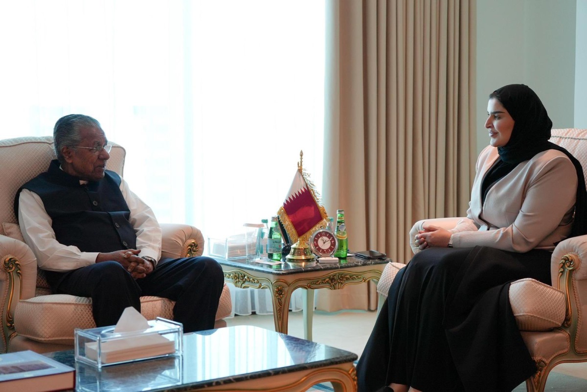 Doha, Qatar: Her Excellency Dr. Mariam bint Ali bin Nasser Al-Misnad, Minister of State for International Cooperation, received today, October 30, 2025, the Shield of Humanity from HE Pinarayi Vijayan, Chief Minister of the State of Kerala in the Republic of India, in recognition of the State of Qatar’s continuous efforts in the field of humanitarian work and its ongoing support for the Republic of India and the Indian 'Kerala' community residing in the State.