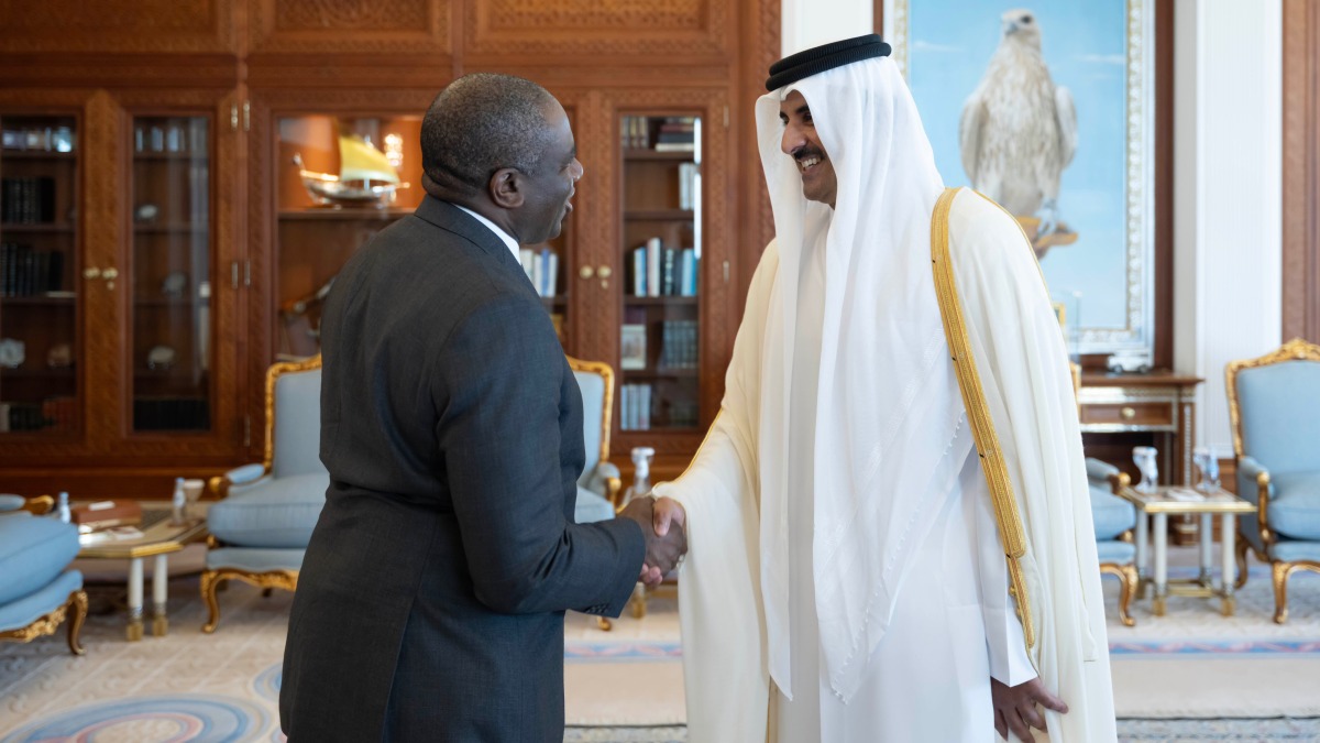 Doha, Qatar: The Amir His Highness Sheikh Tamim bin Hamad Al Thani received at his office at the Amiri Diwan on Wednesday morning Britain Foreign Secretary HE David Lammy and and Secretary of State for Defence HE John Healey and their accompanying delegation, on the occasion of their visit to the country.