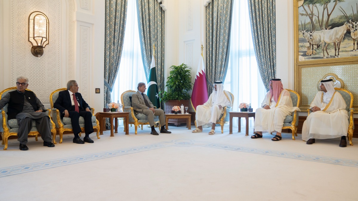 Doha, Qatar: The Amir His Highness Sheikh Tamim bin Hamad Al Thani held an official session of talks at the Amiri Diwan on Thursday with HE Muhammad Shehbaz Sharif, Prime Minister of the Islamic Republic of Pakistan.