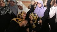 Palestinian relatives mourn during the funeral of Mahmud Homaida in Gaza City, on October 17, 2015 Hebron, Palestinian Territories: Four Palestinians were shot...