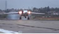 A frame grab taken from footage released by Russia's Defence Ministry October 15, 2015, shows a Sukhoi Su-24M military aircraft landing on the...