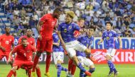 Canada's forward Cyle Larin and Japan's forward Ritsu Doan vie for a header during a friendly football match between Canada and Japan at Al Maktoum Stadium in Dubai, yesterday. Canada won 2-1. AFP