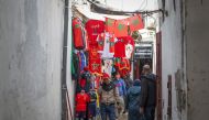 Tunis: The flags, team jerseys and billboards with players are on full display in Rabat ahead of Morocco's World Cup semi-final against France...